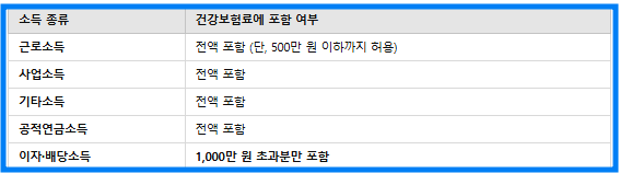 소득의 종류에 따라 건강보험료 부과 여부가 다르게 적용됩니다.