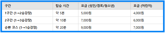 구간탑승 시간요금 (성인/경로/청소년)요금 (어린이)