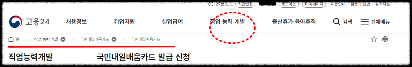 고용24 → 직업능력개발 → 훈련 찾기·신청 → 국민내일배움카드 훈련과정