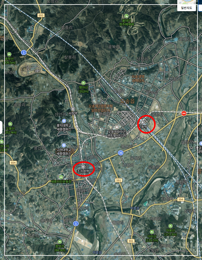 | 위치 | 세종 북부 조치원읍 | 청주 오송읍 (세종 남부와 인접) |