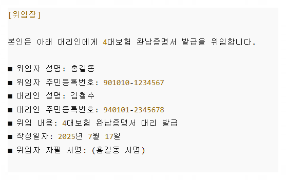 - "4대보험 완납증명서를 가족이 대신 발급해줄 수 있을까?"